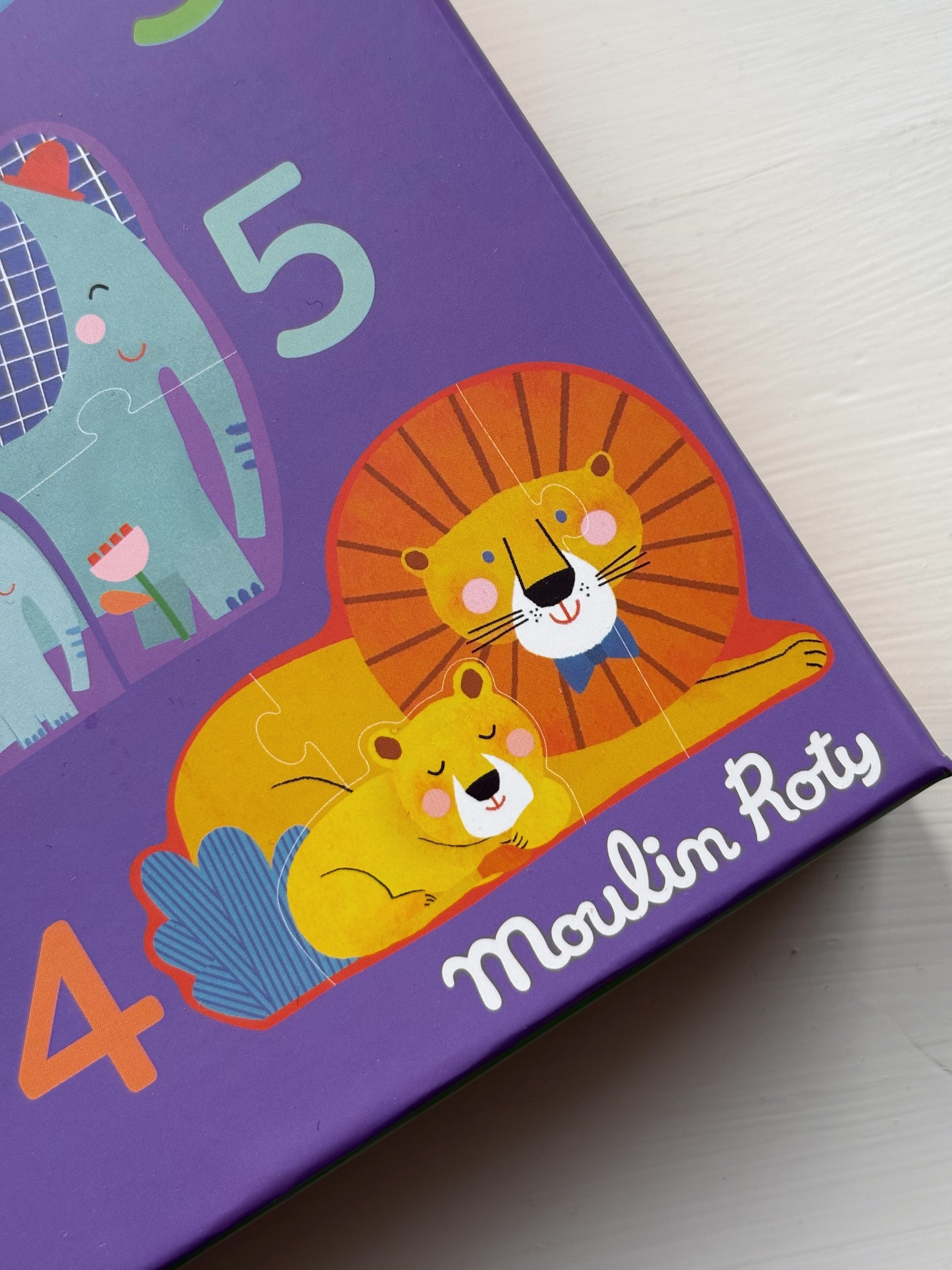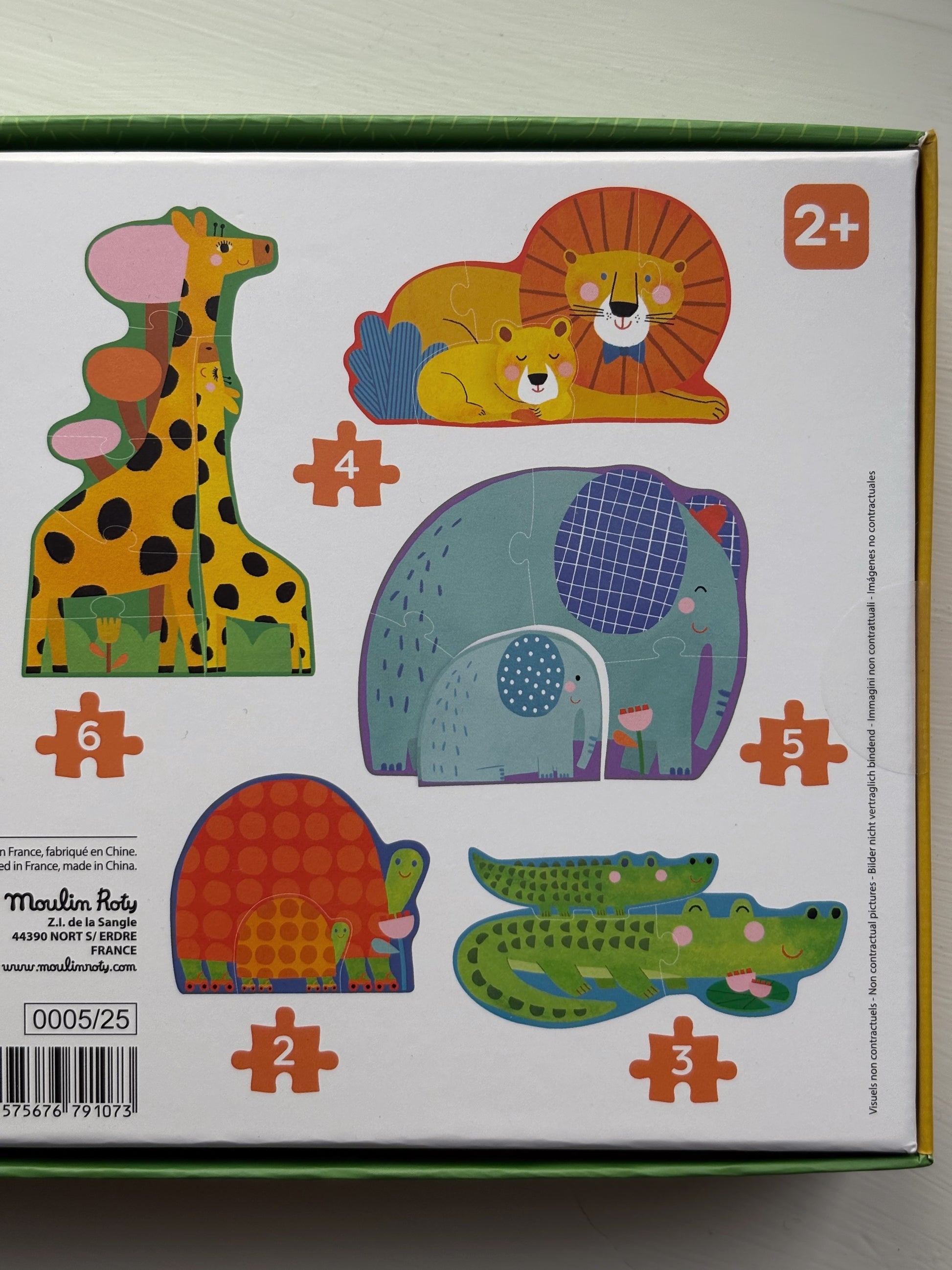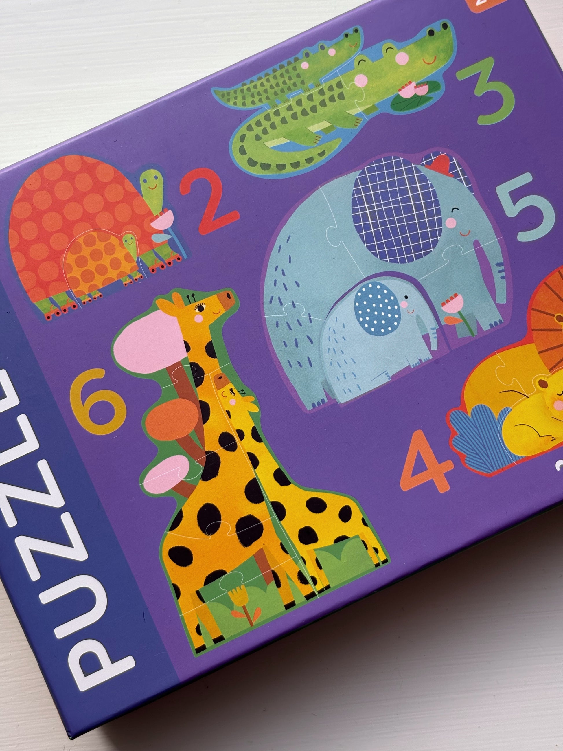 Et sæt med fem puslespil med 2 til 6 brikker – perfekt til små hænder, der er ved at lære at tælle. Disse puslespil er designet til børn i alderen 2 til 4 år og vokser med dit barns evner.
